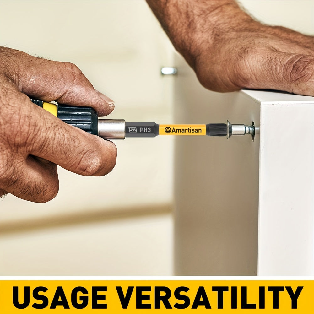 The AMARTISAN ProBit 24 is a set of 24 screwdriver and drill bits made of high-quality S2 alloy steel , hardened and tempered for maximum strength and durability. It includes flat and Phillips bits in two lengths (2.54 cm and 5.84 cm), ideal for precision work and demanding applications.