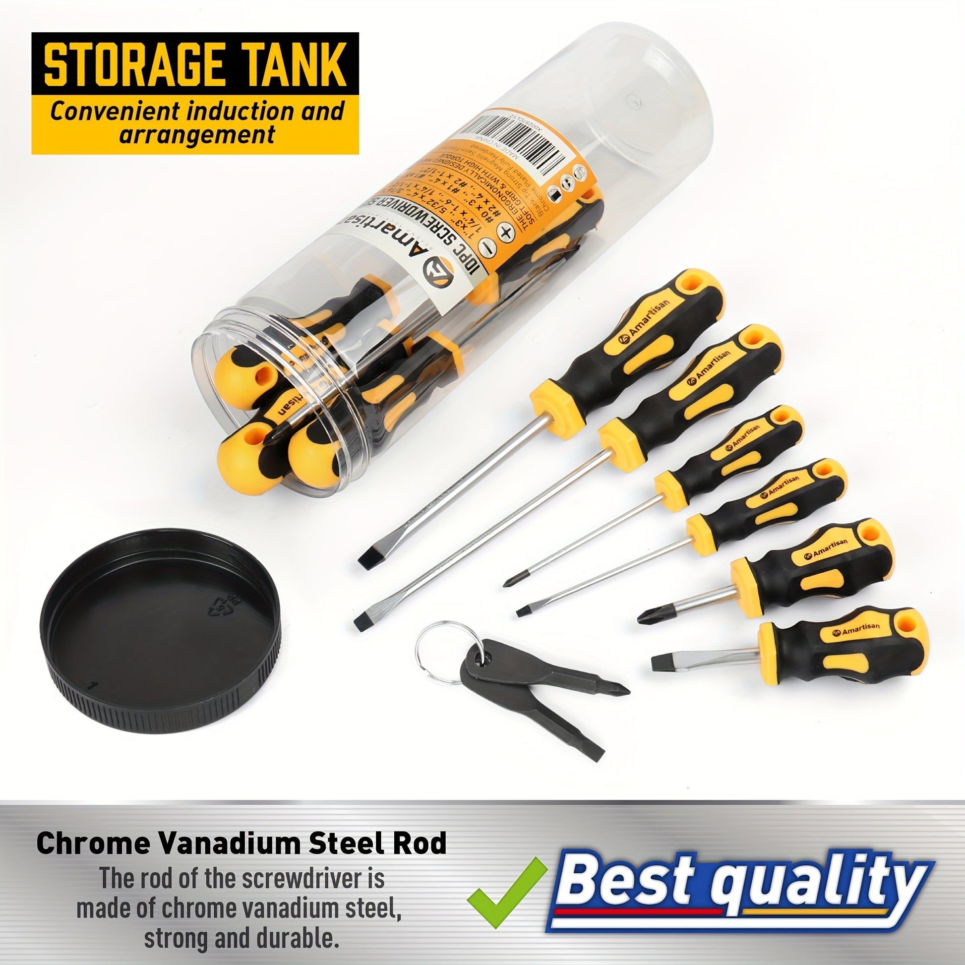 The AMARTISAN ProMag is a set of 12 magnetic screwdrivers designed for professionals and DIY enthusiasts seeking precision, durability, and convenience. Made from chrome-vanadium steel , they offer superior wear resistance and reliable performance in a wide range of applications.