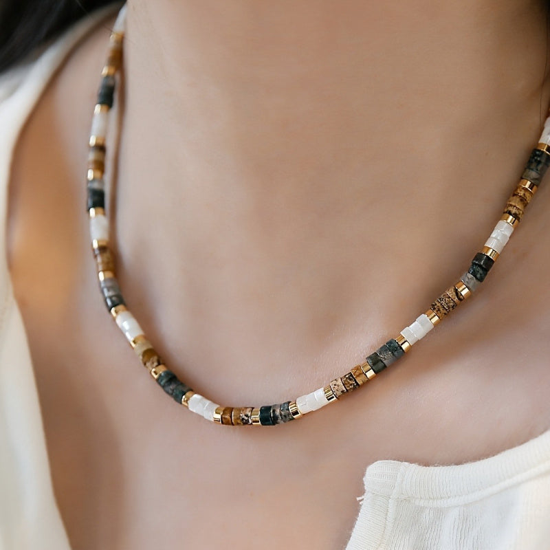 TerraBoho PV — Vintage Bohemian Necklace with Earth Tones Beads and White Gemstones