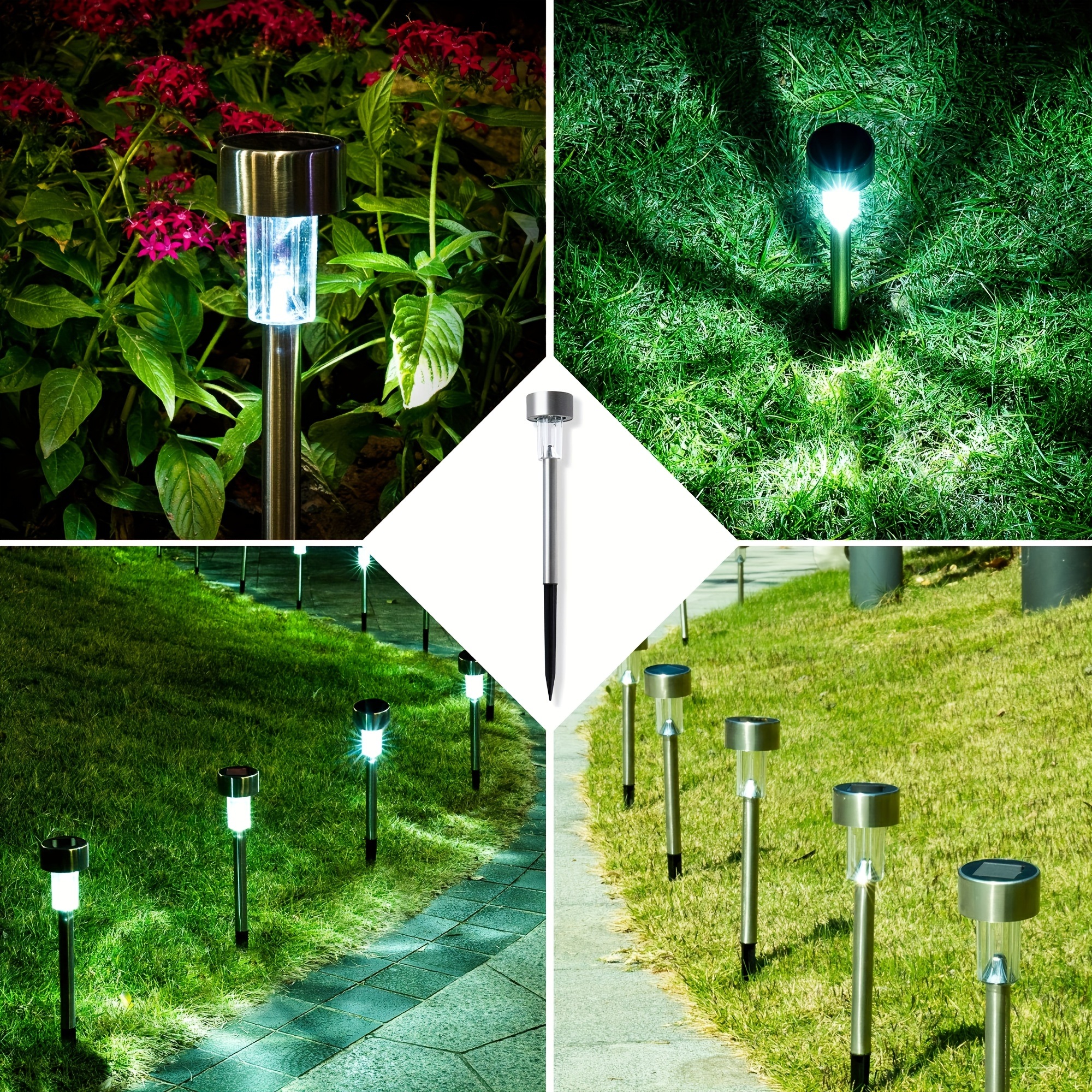 10pcs Solar Stainless Steel Landscape Lights, Outdoor Solar Stick Lights for Patio, Lawn, Park, Garden, Terrace and Landscaping, Cool White