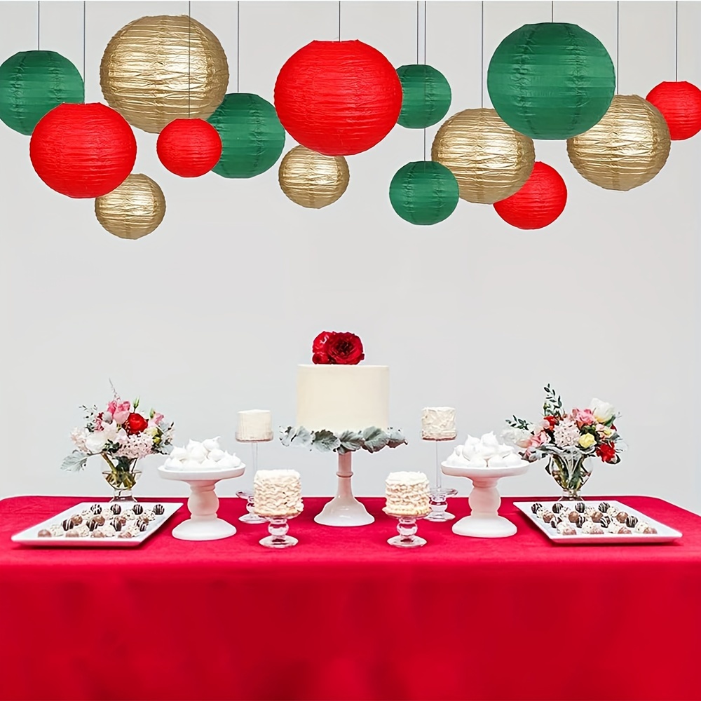 15pcs, Christmas party decoration paper lanterns, 3 25cm, 6 20cm, 6 15cm paper lanterns, 15 sets, suitable for Christmas/New Year room decoration, to increase the festive atmosphere, red, dark green, gold,
