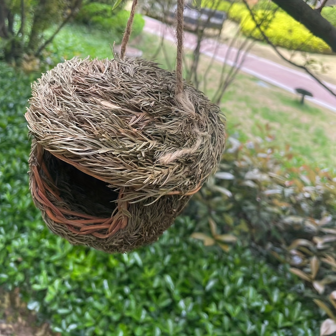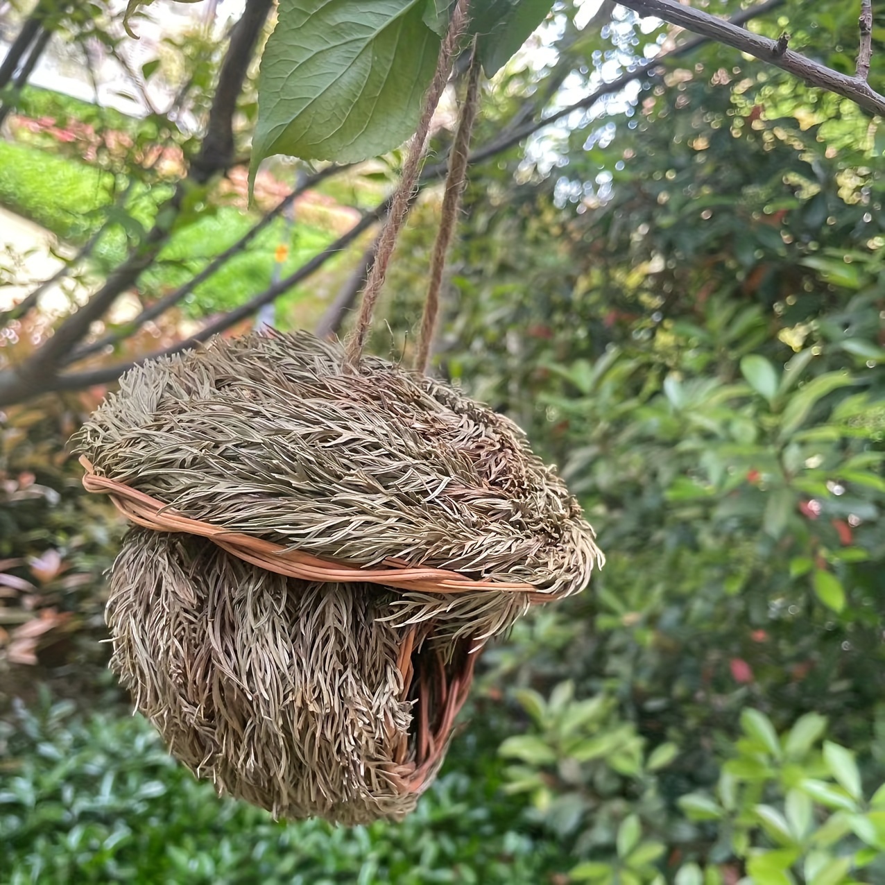 1pc Handmade Grass Bird Nest, Pine Needle Woven Parrot Nest Pearl Bird Nest Warm And Coldproof, Small Pet Ideal Hideout, Pastoral Yard Aerial Charm Round Bird House, Bird Nesting Box