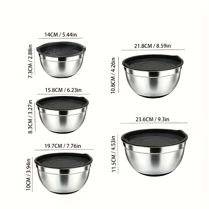 5pcs Stainless Steel Bowl Set, Multi-Functional Kitchen Mixing Bowls with Sealed Lids, Oven-Safe for Baking, Serving Fruits and Vegetables. Ideal for Home Kitchens, Restaurants, Picnics, Camping, Christmas, Easter, Thanksgivi