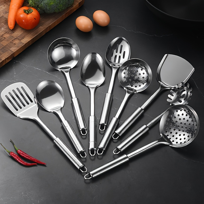 9pcs Modern Stainless Steel Cooking Utensil Set - Non-Stick, Washable, Easy Storage - Ideal for Home Chefs and Culinary Enthusiasts - Perfect for Christmas, Halloween, Thanksgiving, Kitchen Essentials|Sleek Kitchenware|Durabl