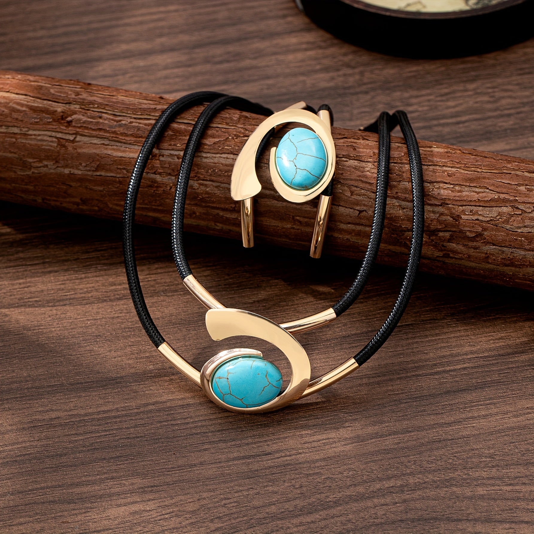 El BohoRegal WQ es un set femenino de estilo bohemio, inspirado en la moda vintage europea y americana, que combina piedras naturales con detalles en turquesa mosaico y un elegante baño dorado KC.
