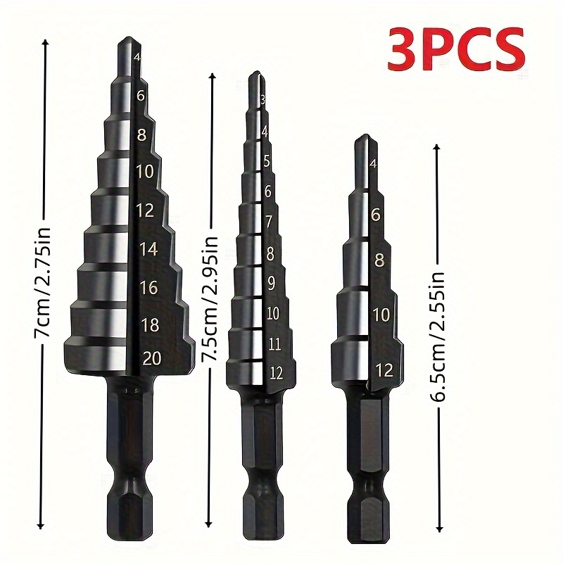 Cobalt Alloy Step Drill Bit Set (3pcs) | 24 Sizes | Conical Drill Bits with Titanium Coating | Suitable for Metal, Stainless Steel, Wood, Plastic | Highly Efficient Drilling And Enlarging