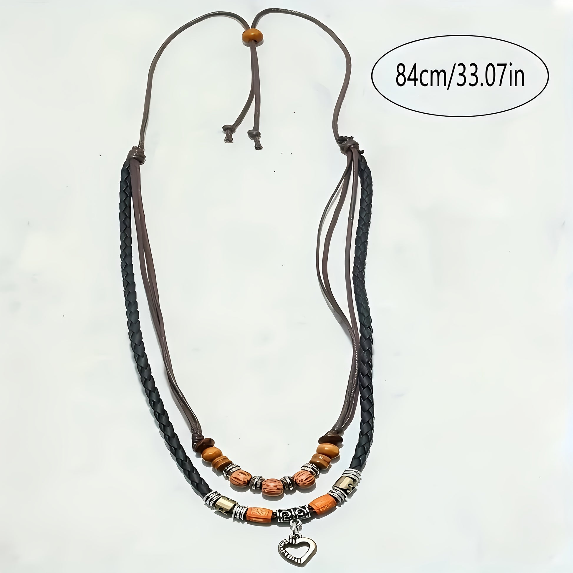 El CorazónTrenzado es un collar femenino de estilo bohemio vintage, elaborado con cuero PU marrón trenzado en doble capa, decorado con cuentas de madera y un dije de corazón que evoca ternura y conexión. Su diseño ajustable y artesanal lo convierte en un accesorio versátil para uso diario, fiestas o como regalo especial en San Valentín.