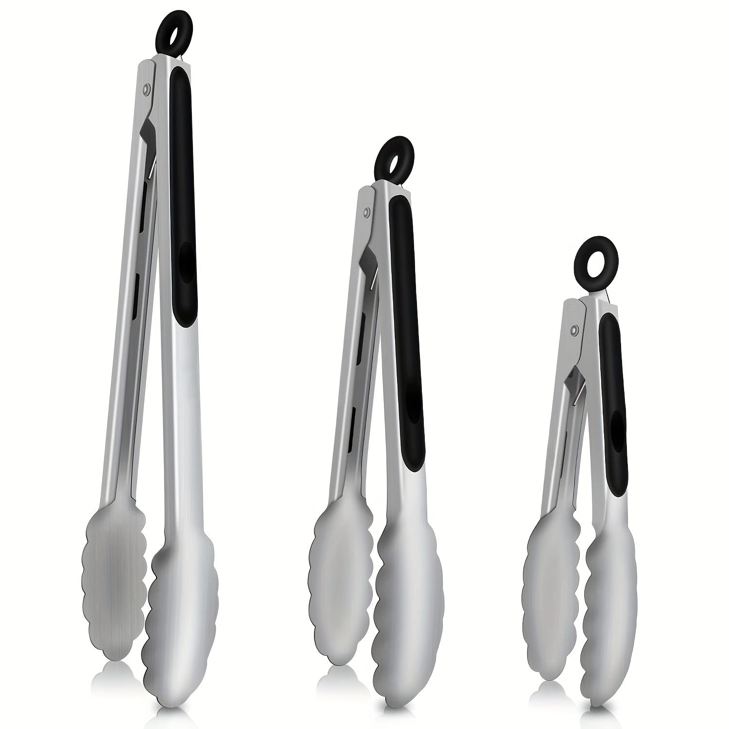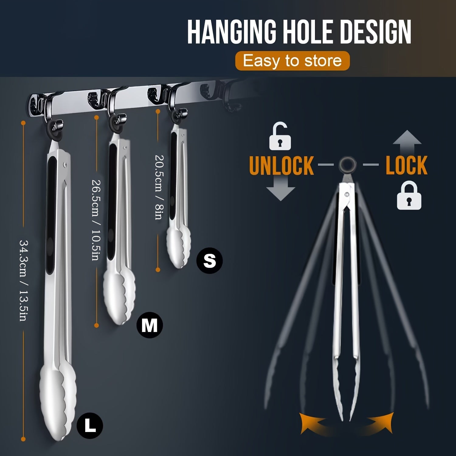 GripChef XL — Set de 3 Pinzas de Cocina en Acero Inoxidable 304 (Diseño con Bloqueo, Resistentes al Calor, Antideslizantes)