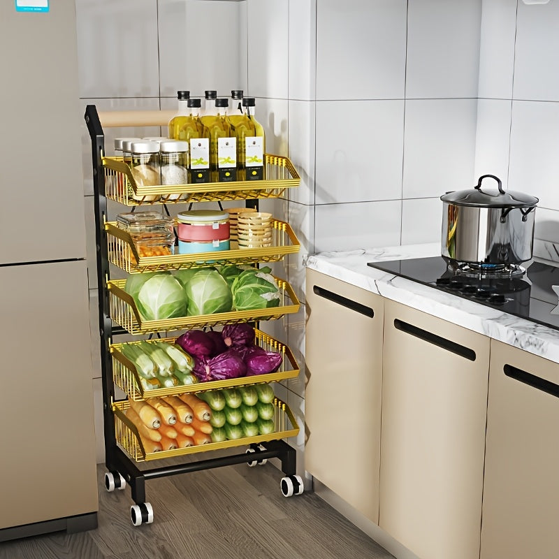 Perfecto para almacenamiento de alimentos, utensilios, herramientas o suministros, este carro de diseño compacto y acabado en color mixto se adapta a cocinas, oficinas, almacenes y más.