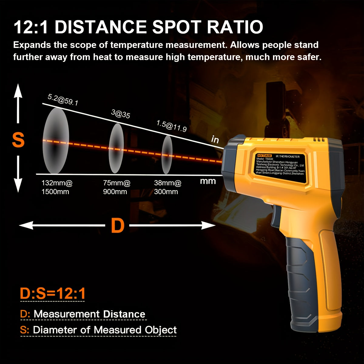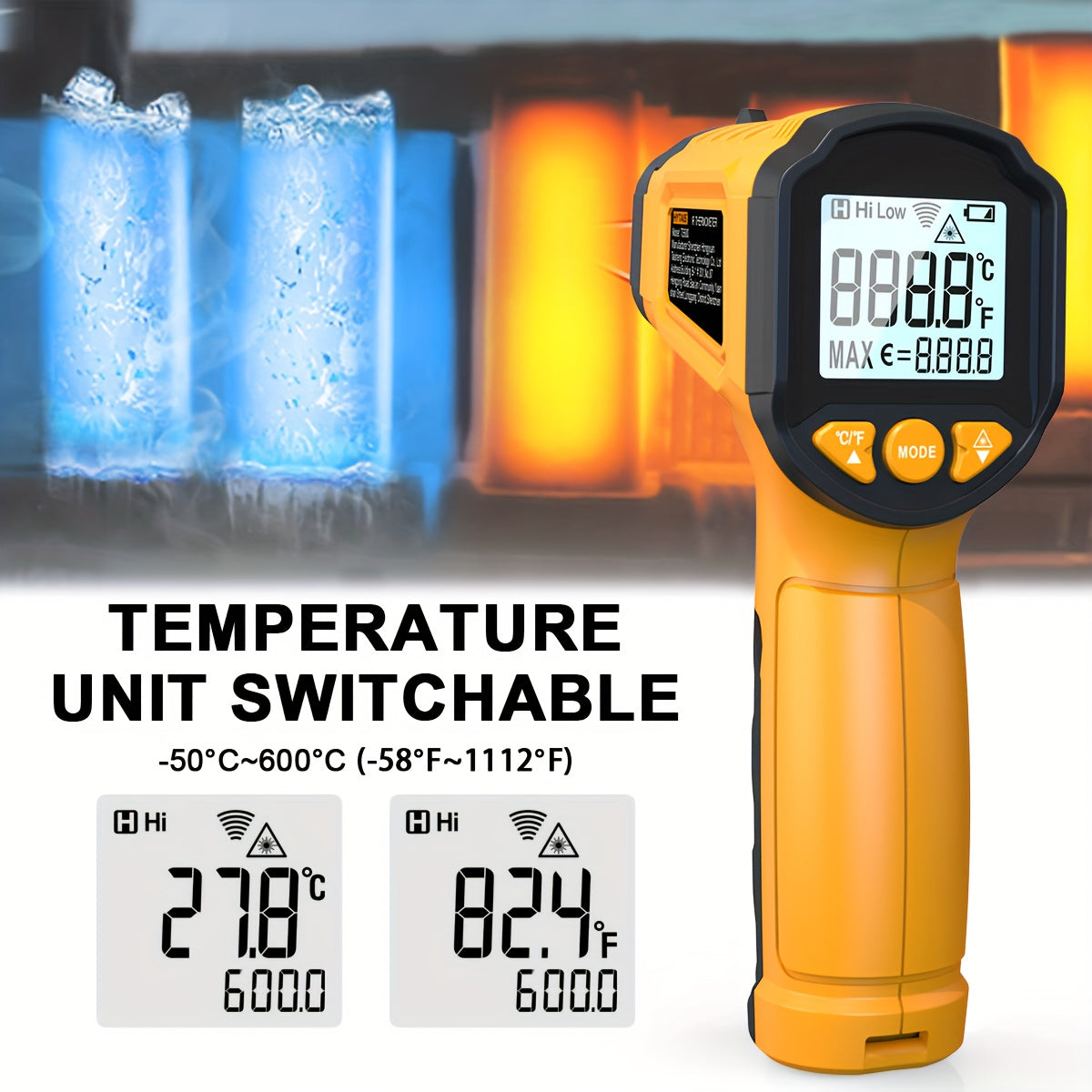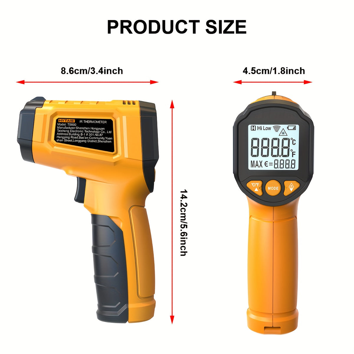 El HeatScan PR de HYTAIS es un termómetro infrarrojo digital con puntero láser, diseñado para ofrecer lecturas rápidas y precisas sin contacto físico. Perfecto para cocina, repostería y control de temperatura en hornos, su amplio rango de medición va desde –50°F hasta 1112°F, ideal para todo tipo de preparaciones.