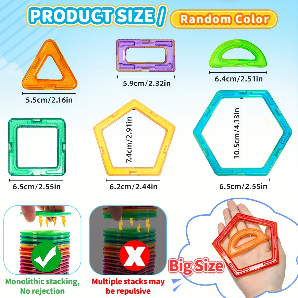Large Magnetic Building Blocks STEM Educational Set with Storage Bag - 3D Architectural Construction for, Creative Learning Gift with Interlocking Rods, Squares, Triangles & Curved Brackets - Birthday/Christmas/Halloween Gift