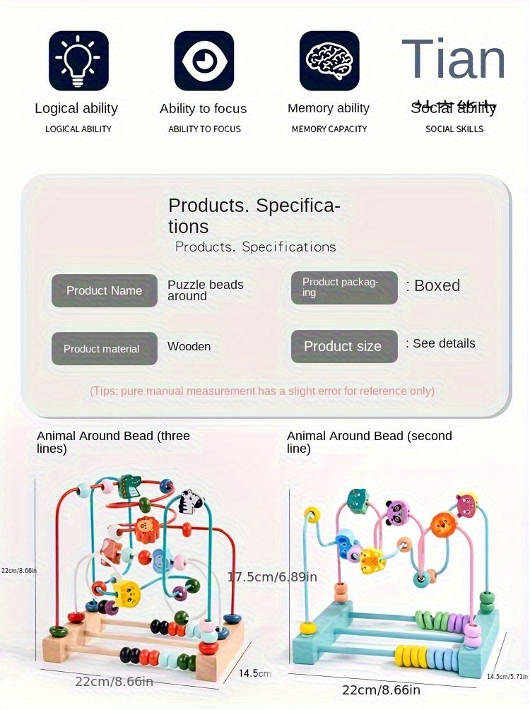 Explora la diversión y el aprendizaje con Magic Forest, un laberinto de cuentas de madera diseñado para estimular la coordinación mano-ojo, la motricidad fina y el desarrollo cognitivo en los más pequeños. Sus cuentas de colores, figuras de animales y piezas de puzzle convierten cada juego en una experiencia sensorial completa.
