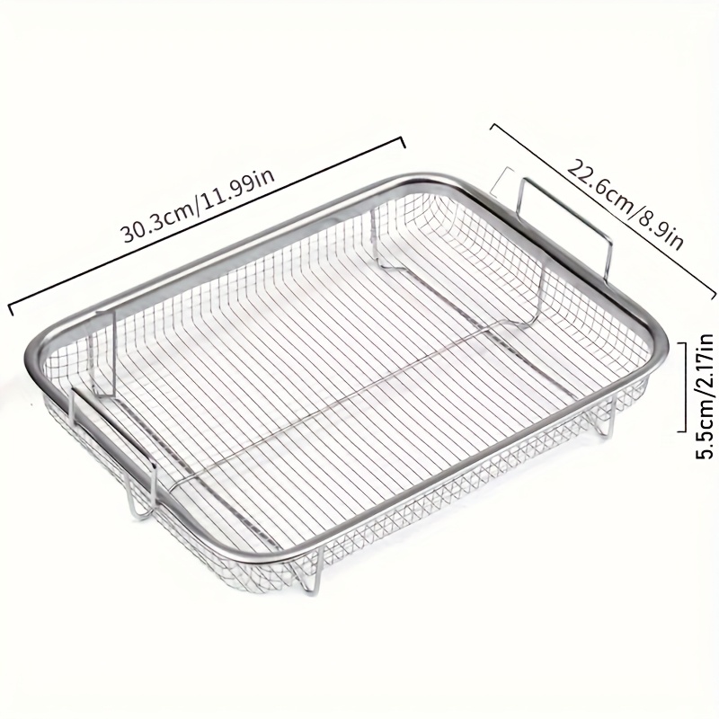 Stainless Steel Fry Basket Rack - Multi-Use Countertop Mesh Baking Tray for Healthier Cooking, Durable Food-Safe Design, Ideal for Fries and Veggies, Kitchen Essentials|Sleek Metallic Finish|Durable Construction, Fry Basket R