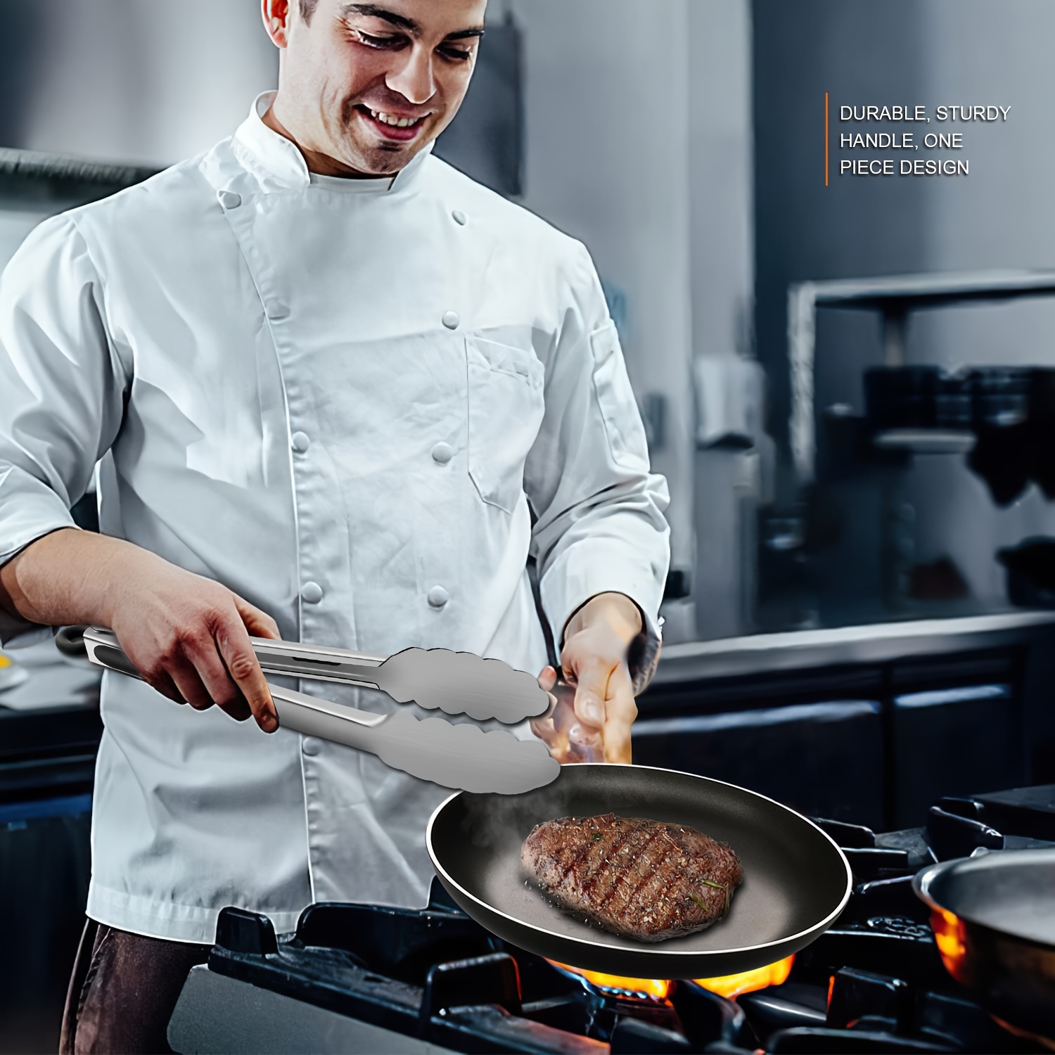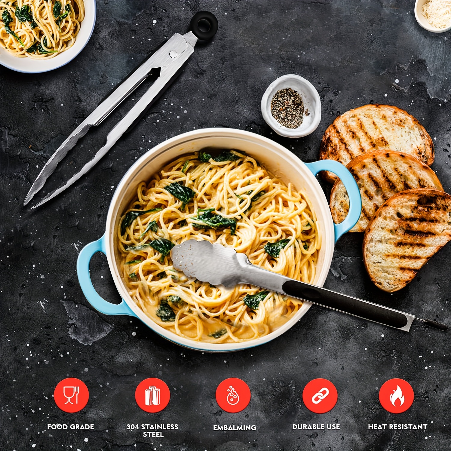 Stainless Steel Kitchen Tongs Set - 3 Pieces Heavy Duty Food Tongs with Locking Design, Heat Resistant up to 600°F, Non-Slip for Cooking, Salad, BBQ - Dishwasher Safe, Multi Size (20.32/26.67/34.29 cm)