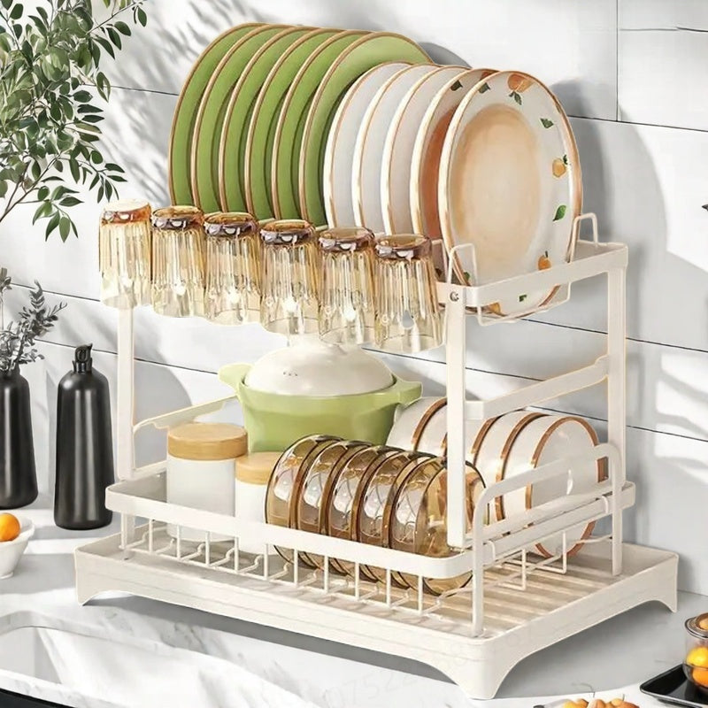 SteelDry LL — Escurridor de Platos de Cocina de 2 Niveles en Acero al Carbono (Compacto, con Sistema de Drenaje)
