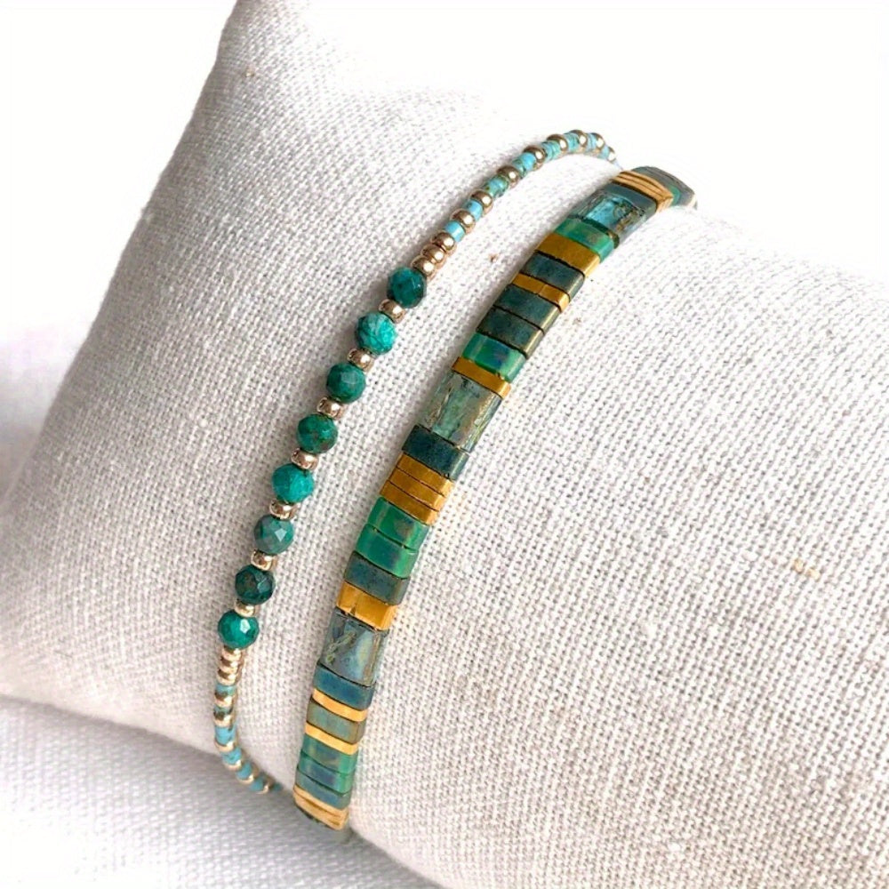 VerdeAura — Set de 2 Pulseras Bohemias con Cuentas de Vidrio y Piedras Semipreciosas